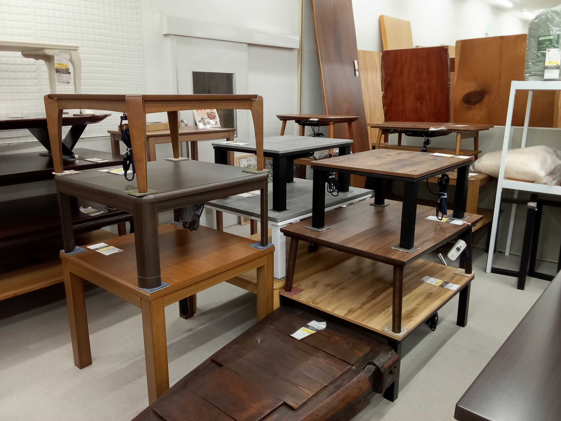 そのほかにも木製天板の一般的なイメージのこたつもこんな感じで準備しておりますよ~😊