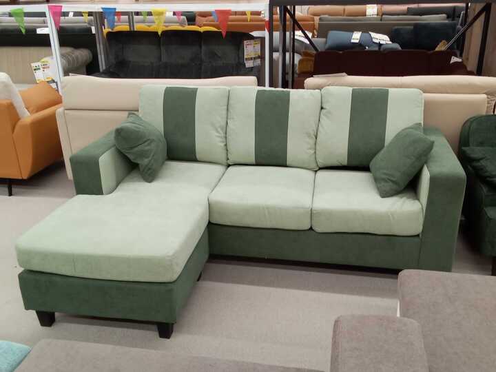 落ち着いたくすみグリーンのツートンカラーソファーです💞