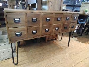 私は個人的には3枚目の引き出しが12杯ある、アイアン脚のチェストが好みです。