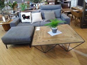 こちらも古材とアイアンという、異素材を組み合わせた、素敵なセンターテーブルを2つ。