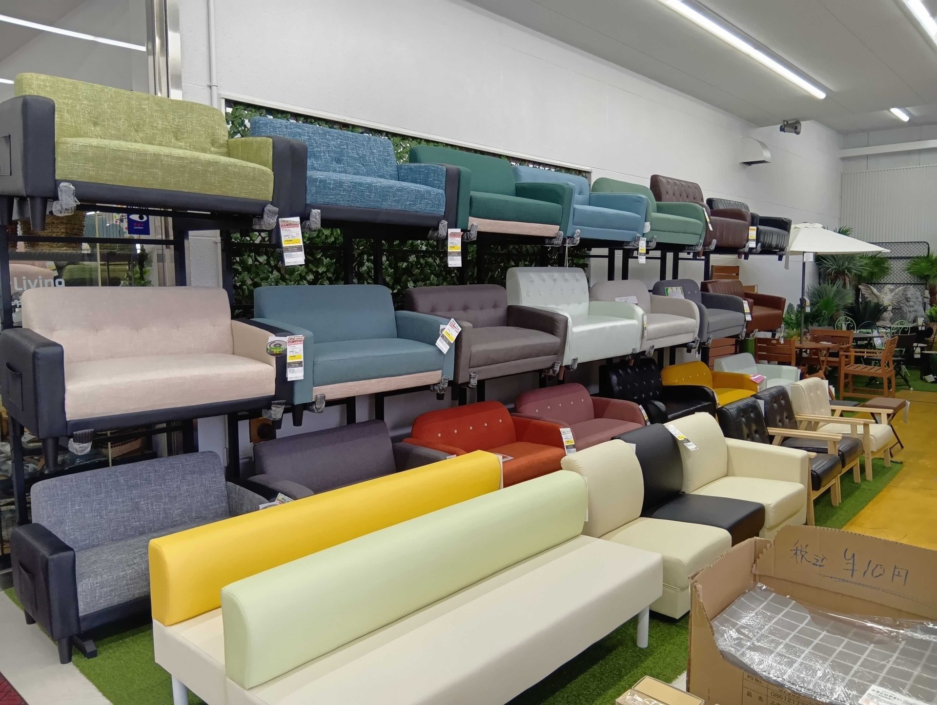 色とりどりのコンパクトソファー。