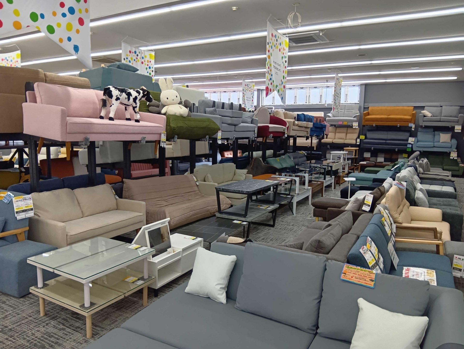 種類が多すぎて展示しきれないので、什器を使って2段、3段と上へと展示しています。
